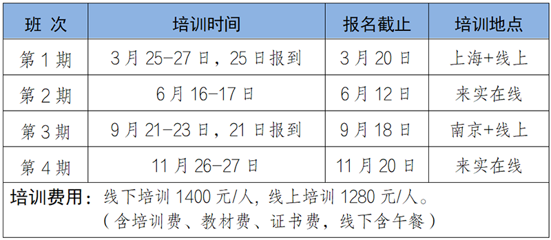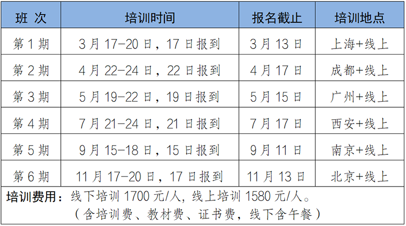 2026年培训课程基本均以线下+线上两种方式同时开展,学员可根据自身需求选择到培训现场或通过线上同步直播的方式进行学习。